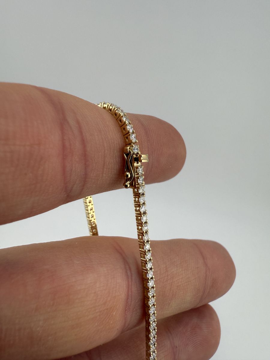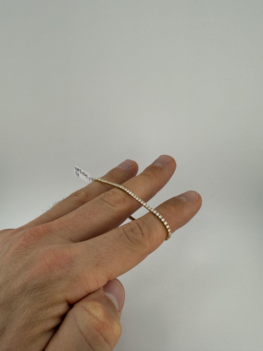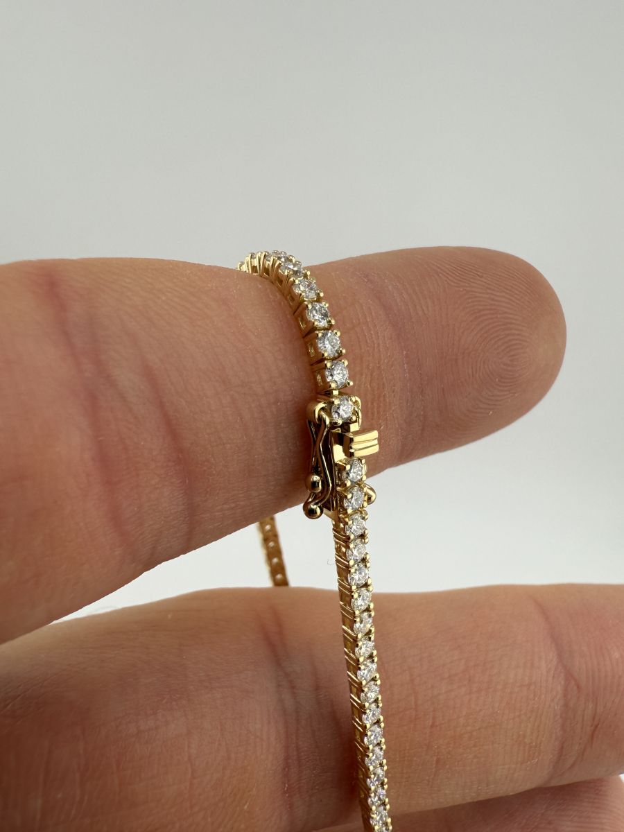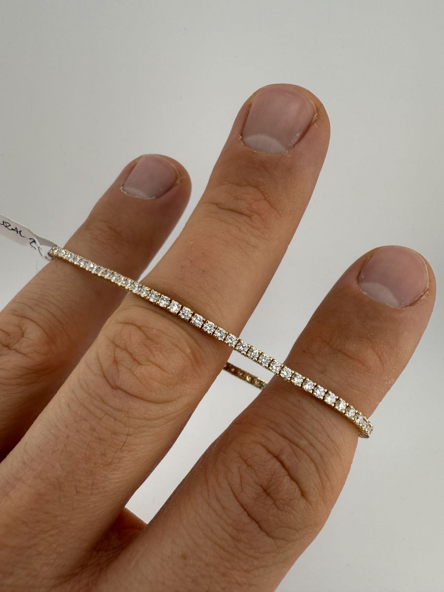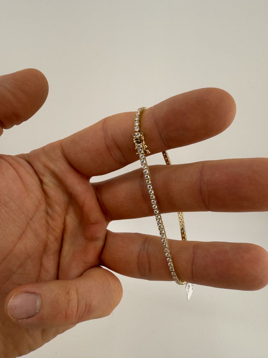 Classic Tenis Bracelet to wyjątkowy przykład elegancji i klasy, który nigdy nie wychodzi z mody. Tenisowa bransoletka zdobiona jest diamentami w szlifie brylantowym, które subtelnie mienią się przy każdym ruchu. Każdy diament jest starannie dobrany i umieszczony, aby zapewnić niepowtarzalny blask i perfekcyjne dopasowanie. Bransoletka Classic Tenis jest doskonałym wyborem na każdą okazję, dodając uroku i wyrafinowania każdej stylizacji. Jeśli nie znajdziesz idealnej bransoletki w naszej ofercie, skontaktuj się z nami – stworzymy dla Ciebie spersonalizowaną wersję, spełniającą wszystkie Twoje oczekiwania.