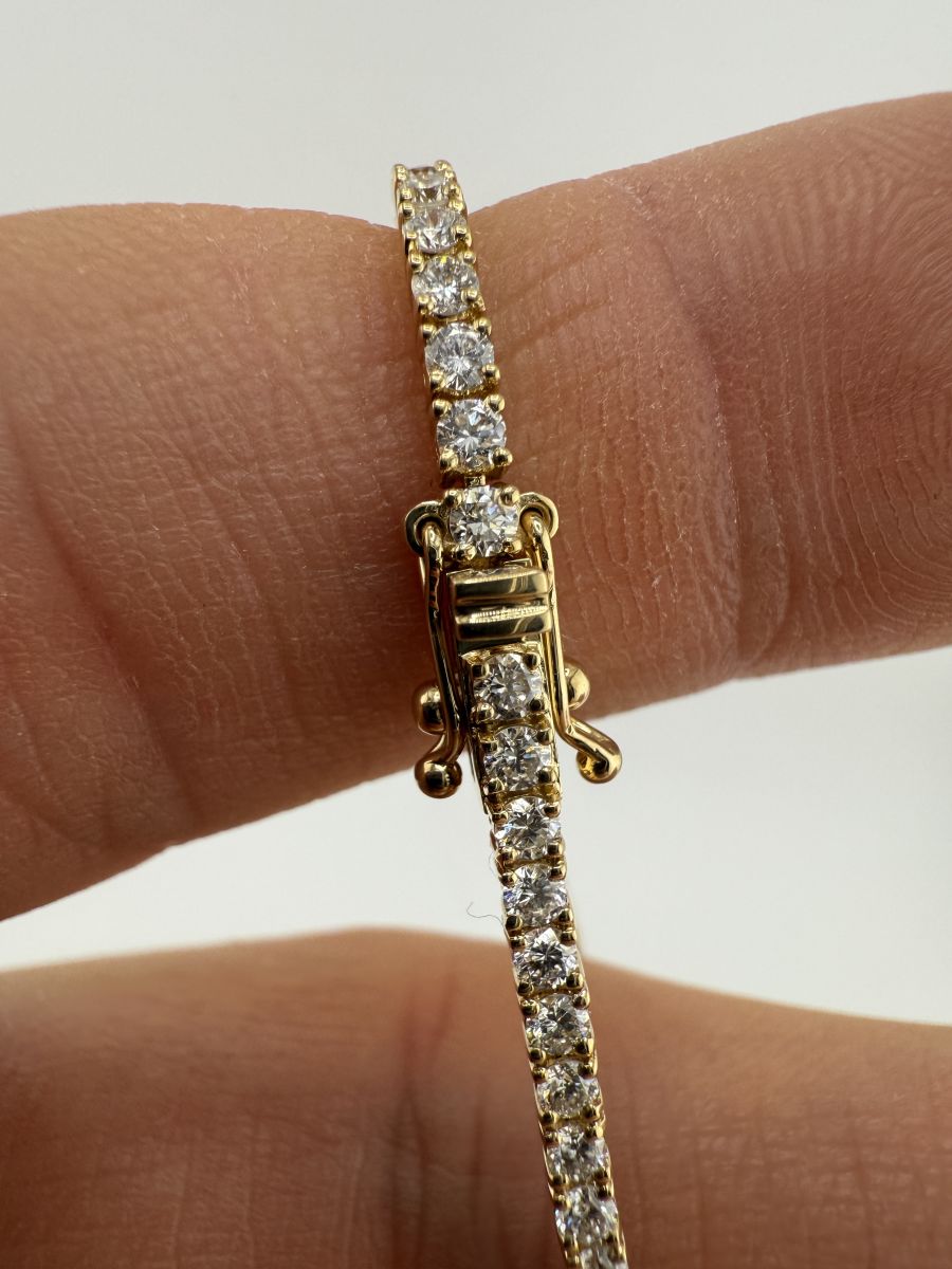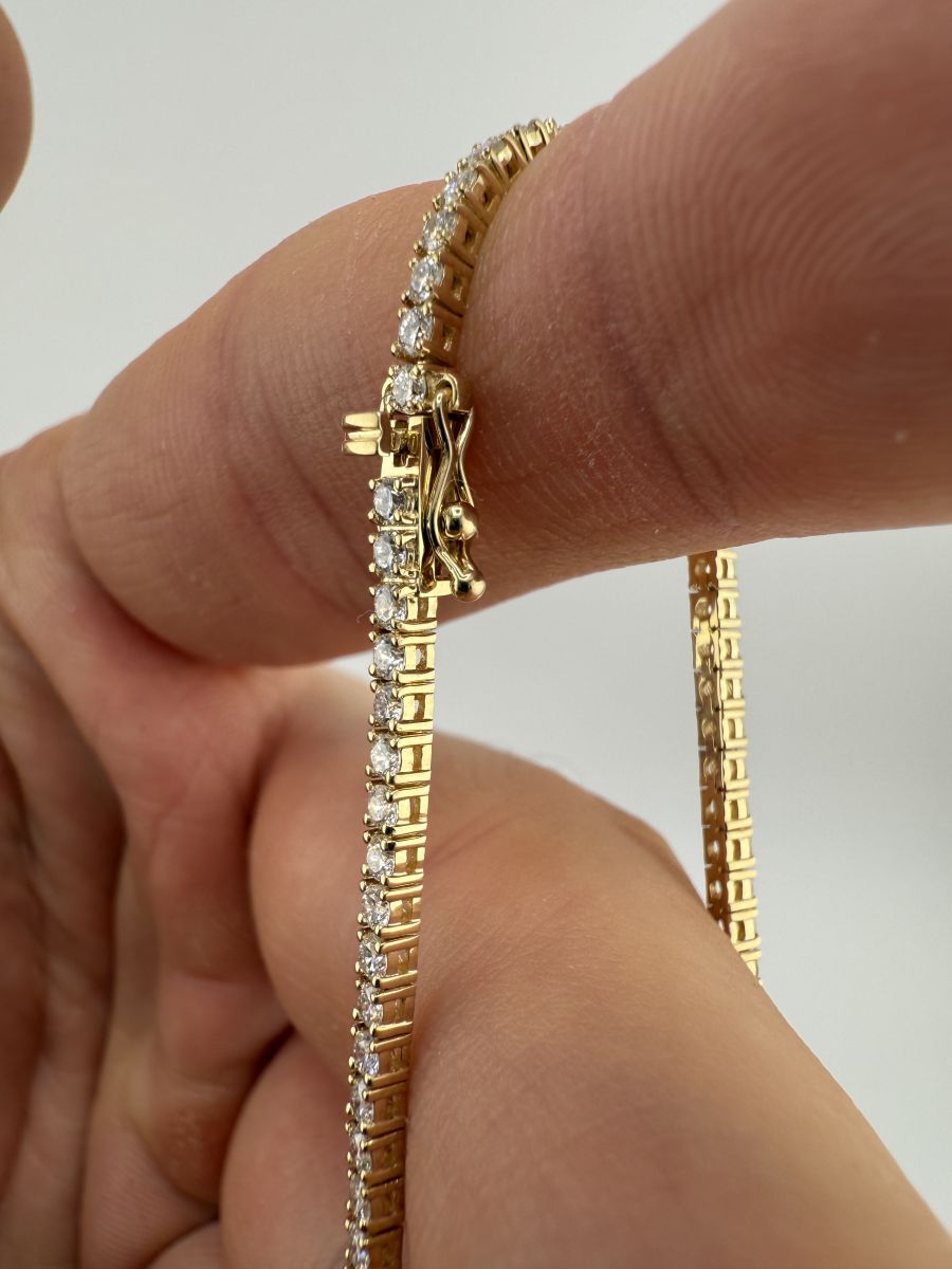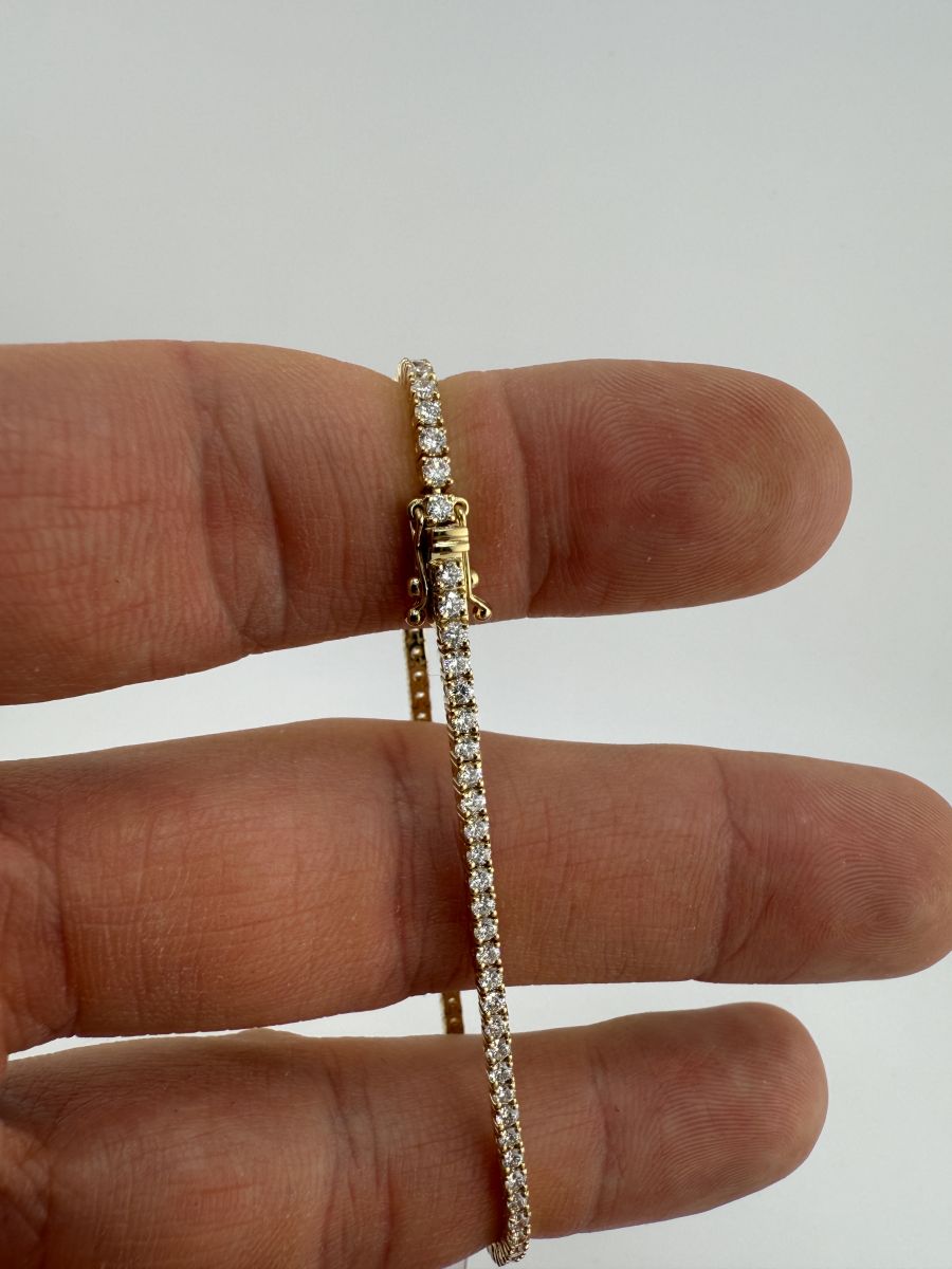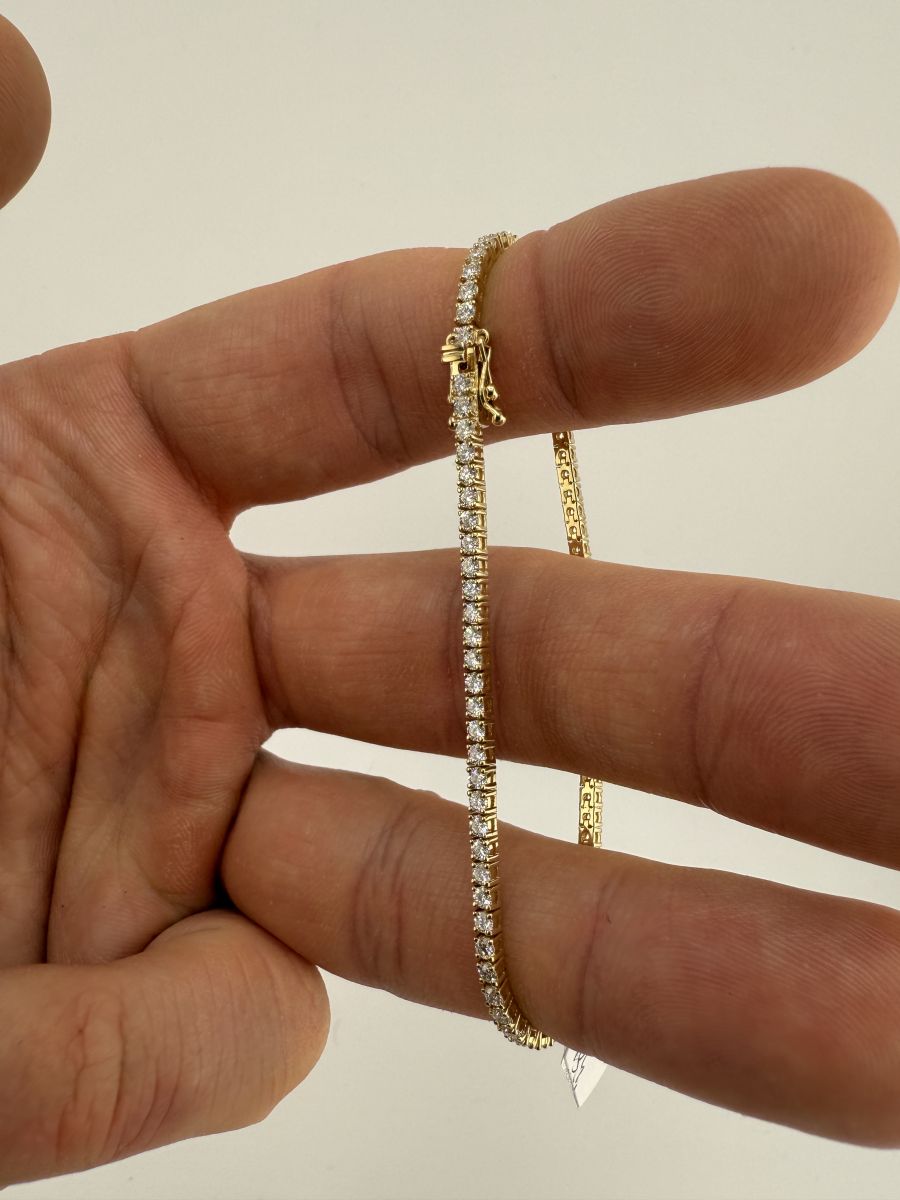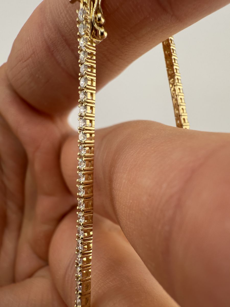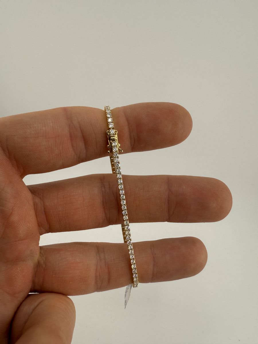 Classic Tenis Bracelet to wyjątkowy przykład elegancji i klasy, który nigdy nie wychodzi z mody. Tenisowa bransoletka zdobiona jest diamentami w szlifie brylantowym, które subtelnie mienią się przy każdym ruchu. Każdy diament jest starannie dobrany i umieszczony, aby zapewnić niepowtarzalny blask i perfekcyjne dopasowanie. Bransoletka Classic Tenis jest doskonałym wyborem na każdą okazję, dodając uroku i wyrafinowania każdej stylizacji. Jeśli nie znajdziesz idealnej bransoletki w naszej ofercie, skontaktuj się z nami – stworzymy dla Ciebie spersonalizowaną wersję, spełniającą wszystkie Twoje oczekiwania.