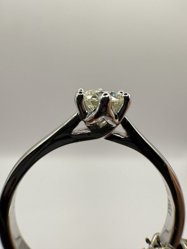 Pierścionek z serii Braid wykonany z białego 585 to symbol elegancji i subtelnego stylu. Zdobiony pojedynczym kamieniem centralnym, który przyciąga uwagę swoim blaskiem, doskonale wpisuje się w nowoczesne, minimalistyczne trendy. Idealny wybór na wyjątkowe okazje lub codzienne noszenie. Klasyka w nowoczesnym wydaniu.