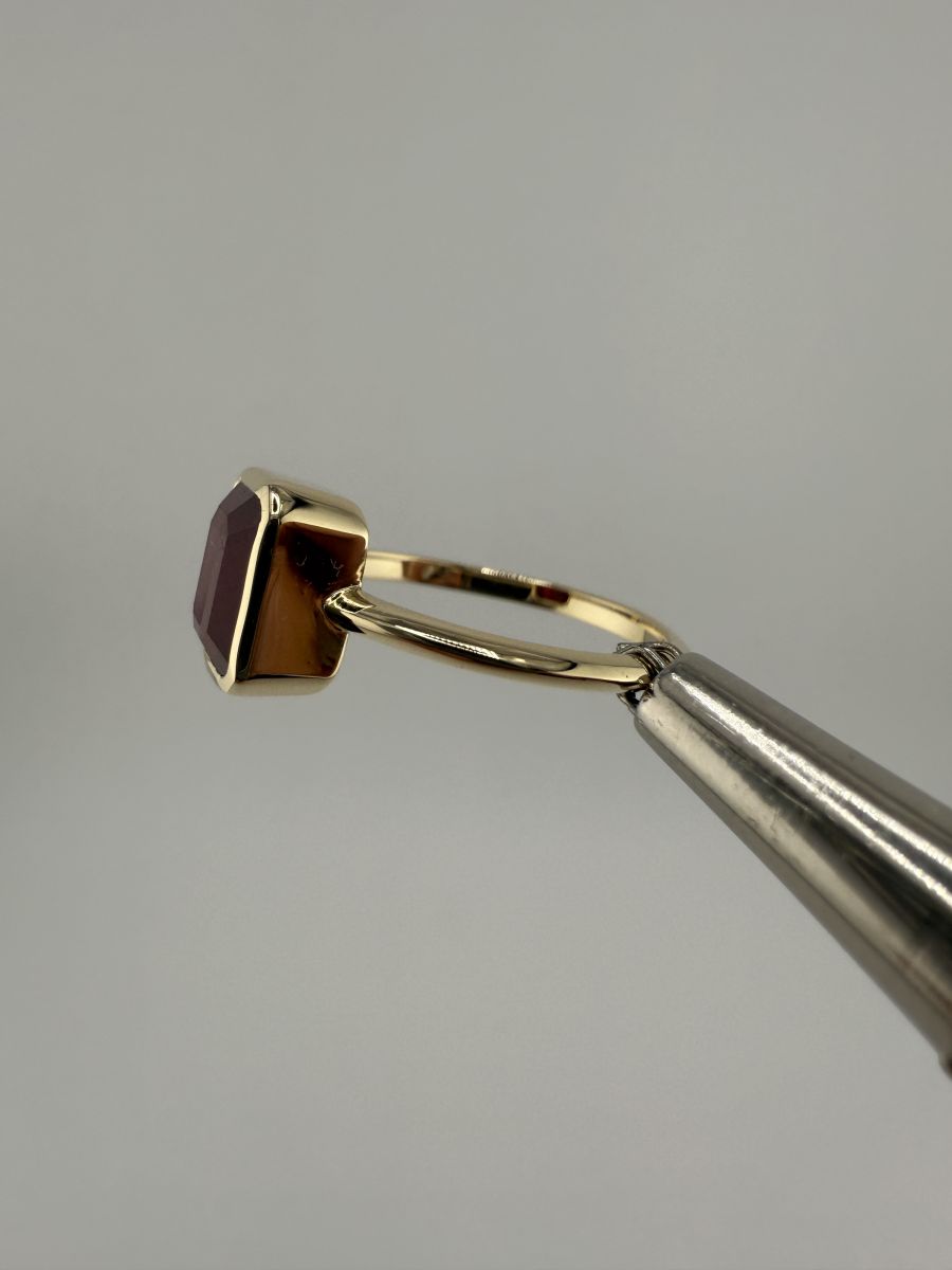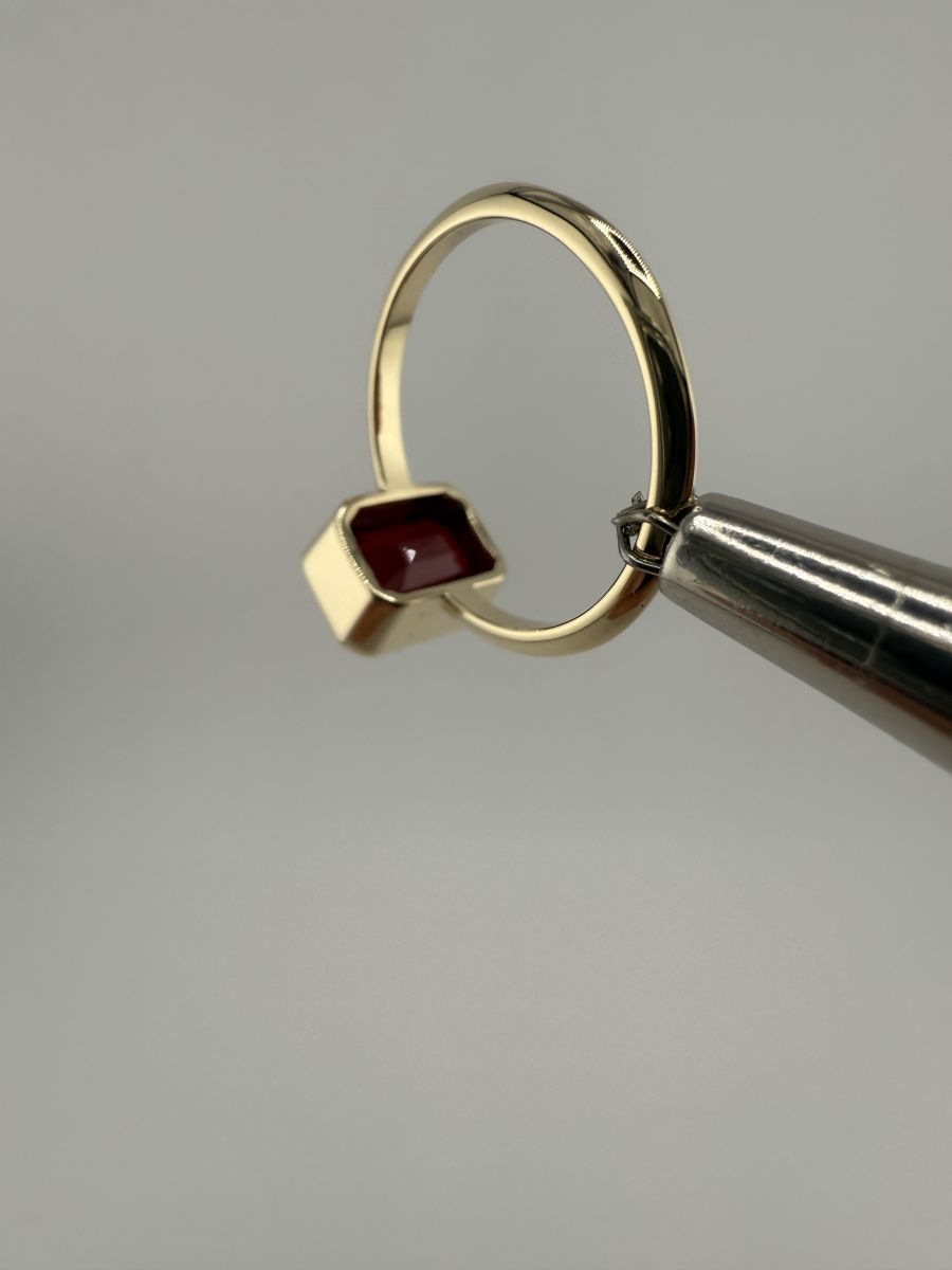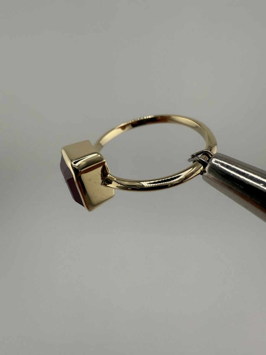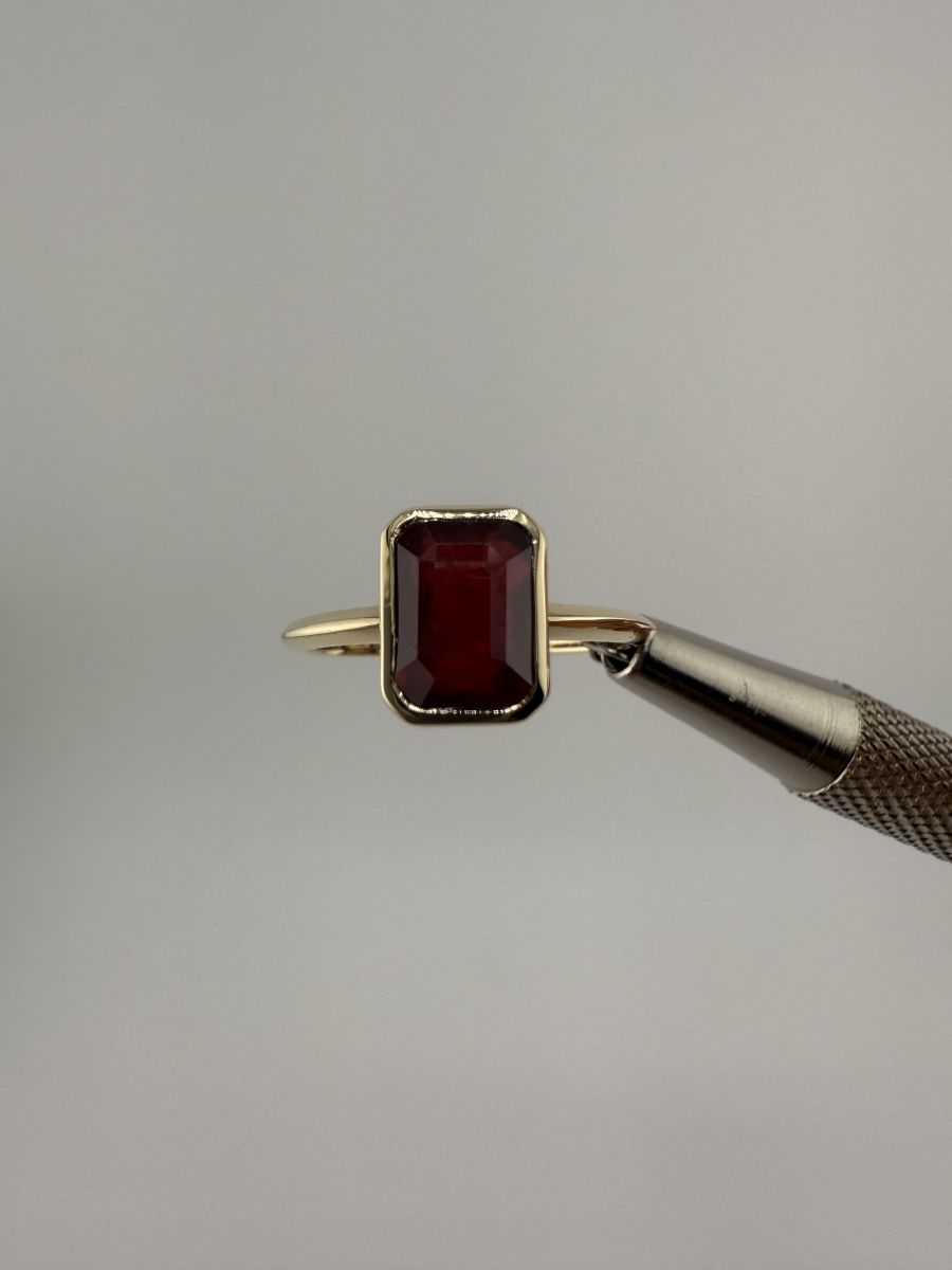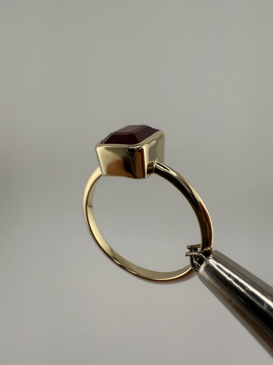 Pierścionek Elegance Horizon to połączenie ponadczasowej elegancji i nowoczesnego designu. Wykonany z żółtego złota, centralny kamień w kształcie ośmiokąta, ze ściętymi rogami, został osadzony poprzecznie w stosunku do dłoni, co nadaje pierścionkowi wyjątkowy, geometryczny wygląd. Ten niezwykle stylowy pierścionek przyciąga uwagę swoim wyrafinowanym blaskiem i doskonałym wykończeniem, podkreślając indywidualność i elegancję noszącej go osoby.