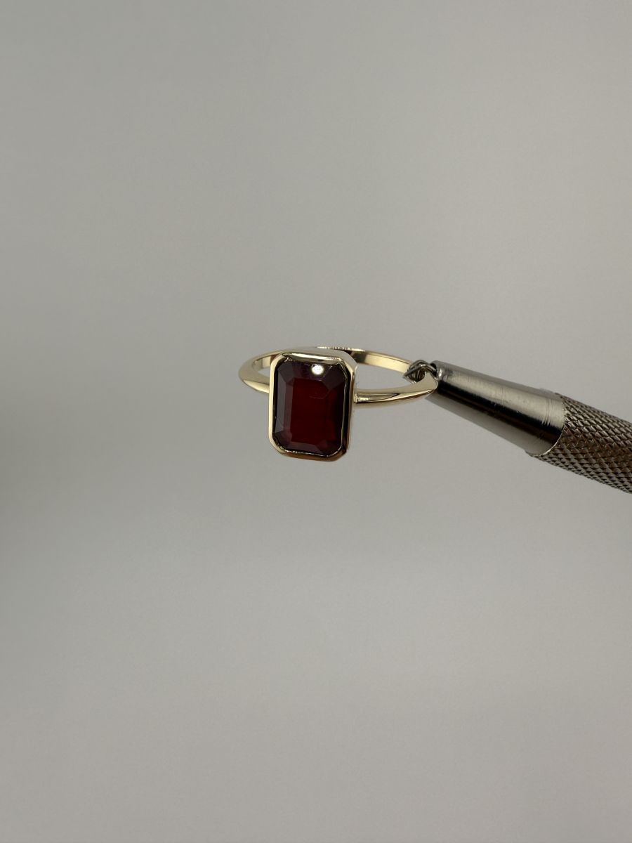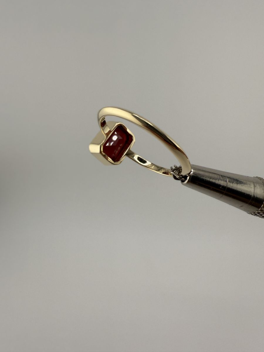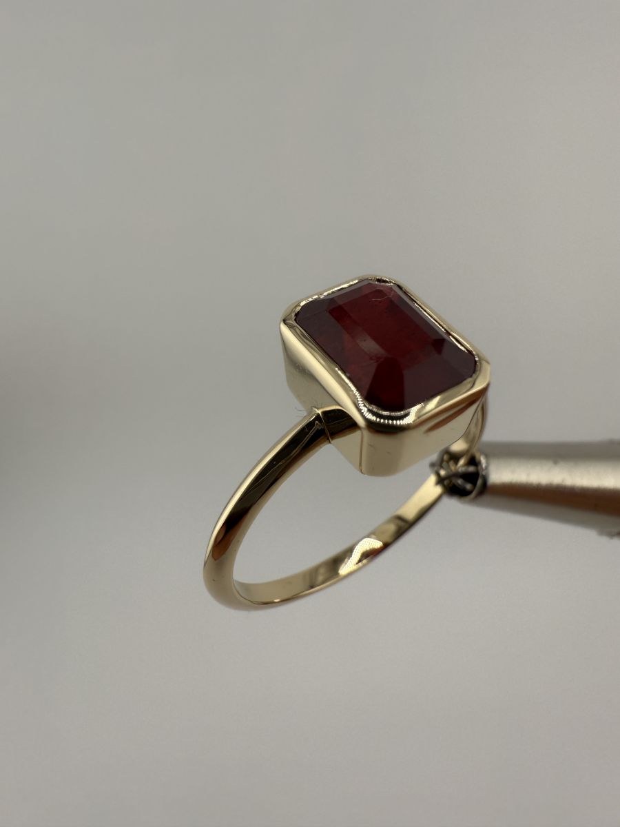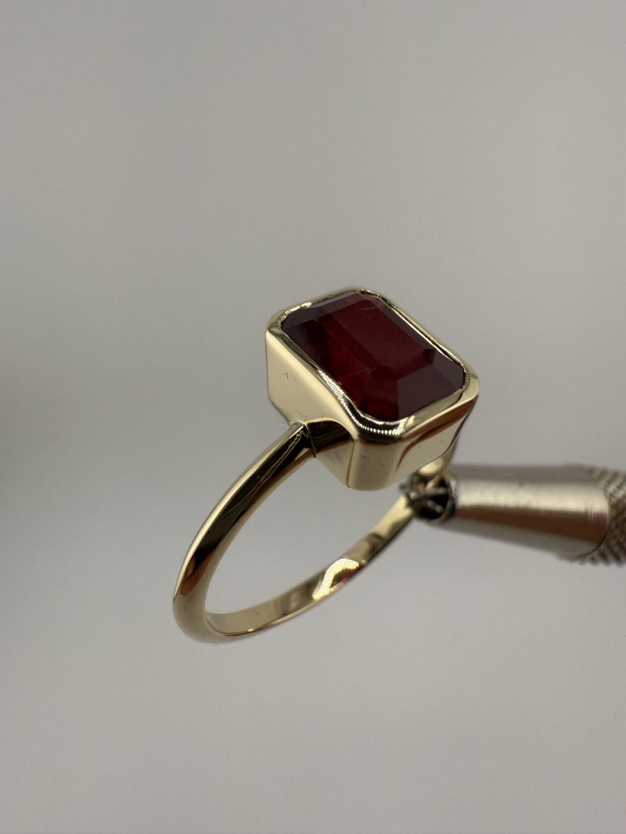 Pierścionek Elegance Horizon to połączenie ponadczasowej elegancji i nowoczesnego designu. Wykonany z żółtego złota, centralny kamień w kształcie ośmiokąta, ze ściętymi rogami, został osadzony poprzecznie w stosunku do dłoni, co nadaje pierścionkowi wyjątkowy, geometryczny wygląd. Ten niezwykle stylowy pierścionek przyciąga uwagę swoim wyrafinowanym blaskiem i doskonałym wykończeniem, podkreślając indywidualność i elegancję noszącej go osoby.