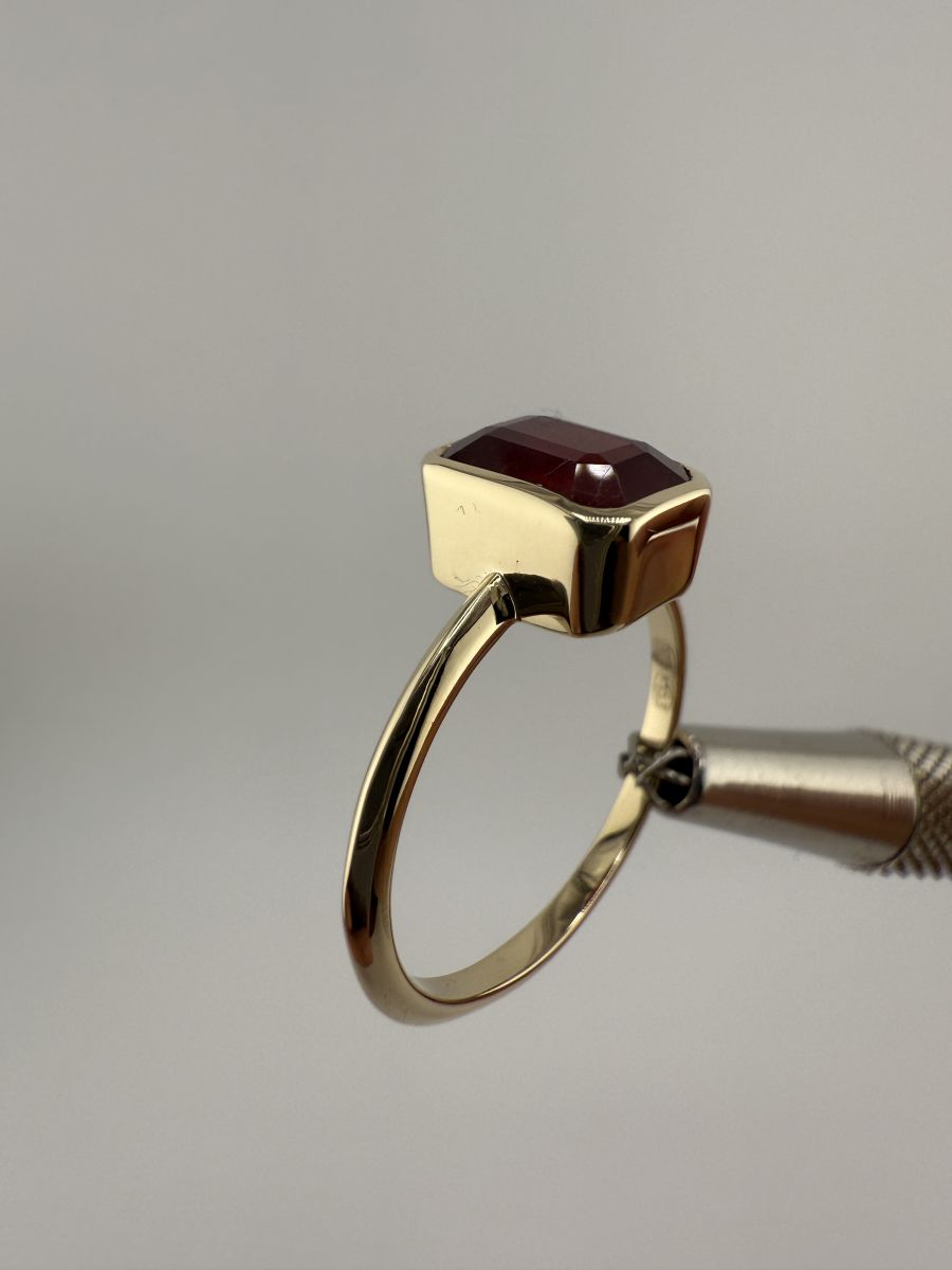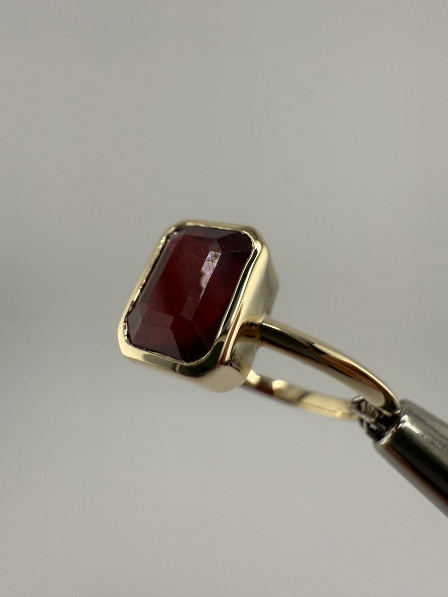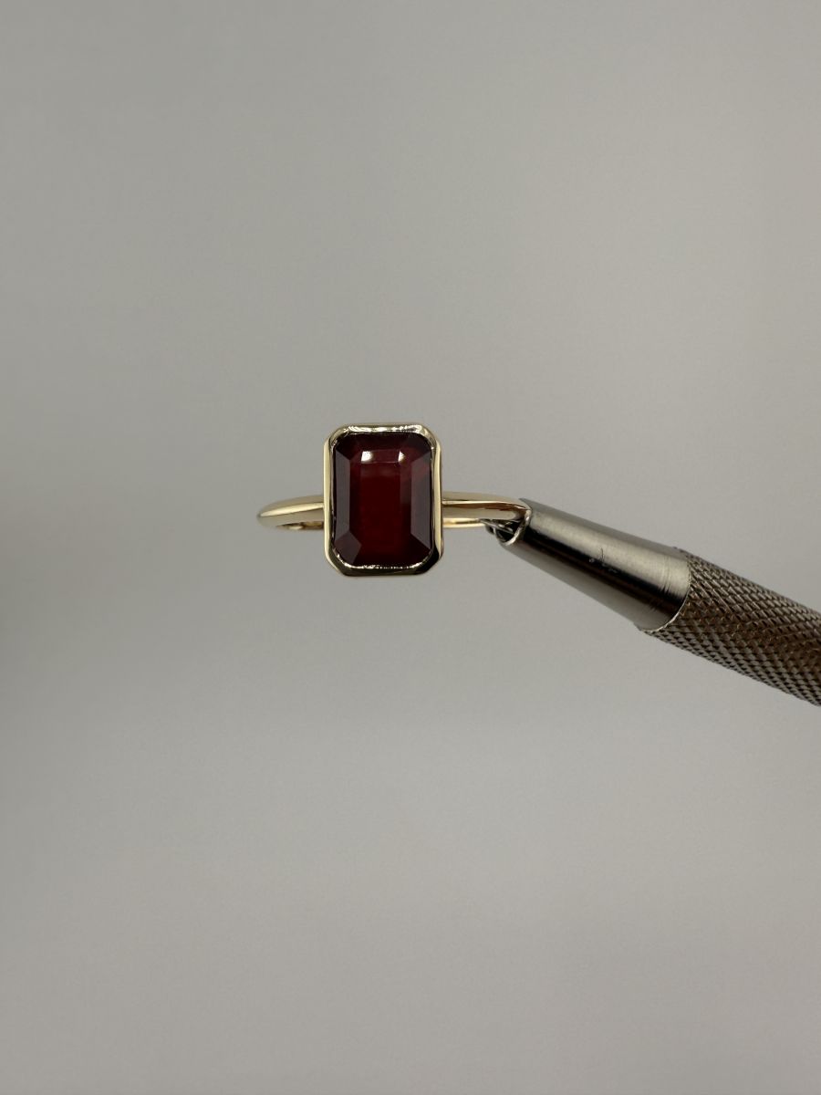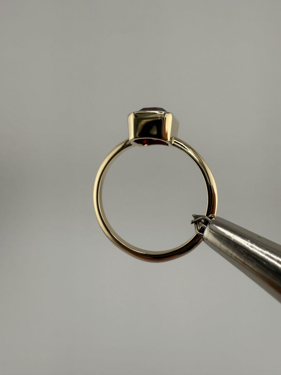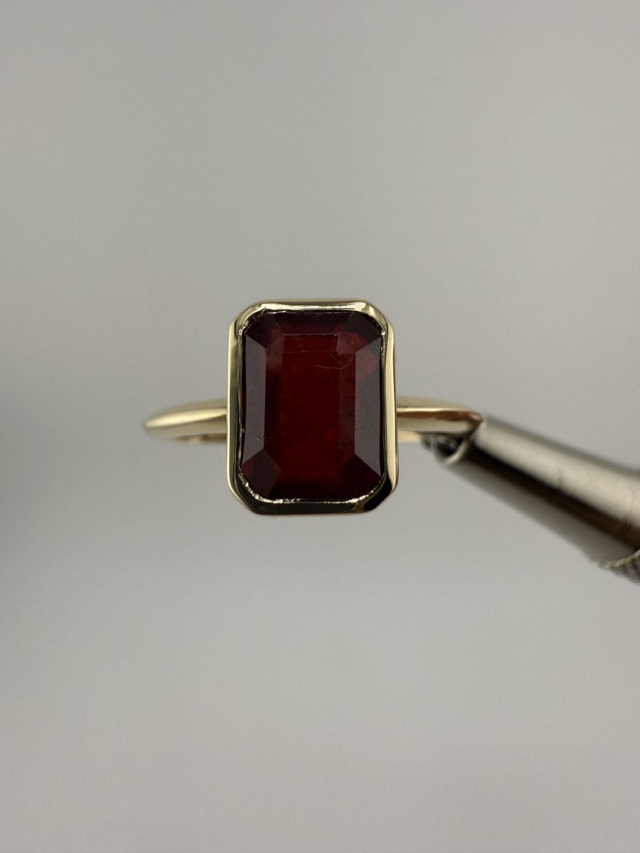 Pierścionek Elegance Horizon to połączenie ponadczasowej elegancji i nowoczesnego designu. Wykonany z żółtego złota, centralny kamień w kształcie ośmiokąta, ze ściętymi rogami, został osadzony poprzecznie w stosunku do dłoni, co nadaje pierścionkowi wyjątkowy, geometryczny wygląd. Ten niezwykle stylowy pierścionek przyciąga uwagę swoim wyrafinowanym blaskiem i doskonałym wykończeniem, podkreślając indywidualność i elegancję noszącej go osoby.