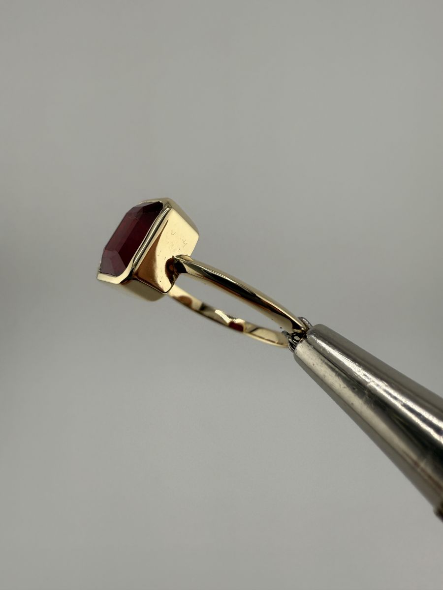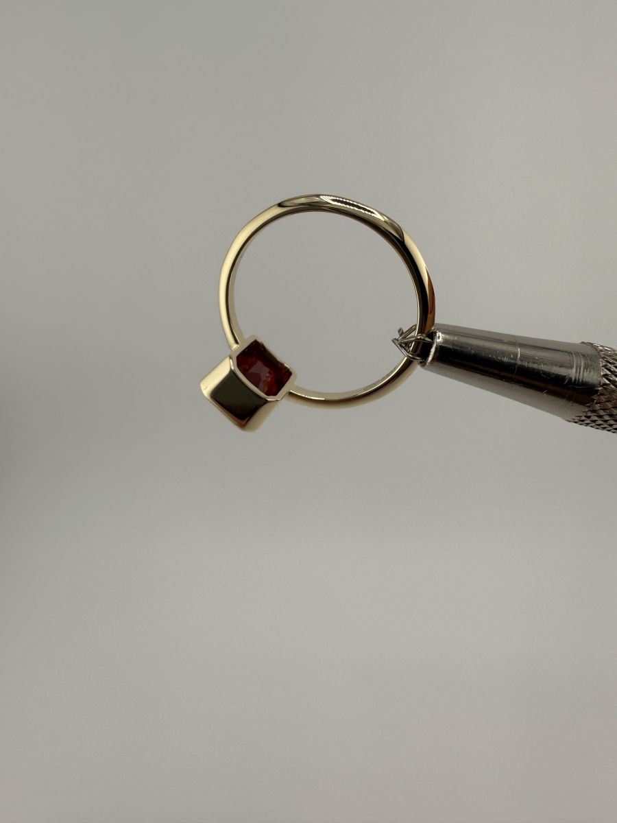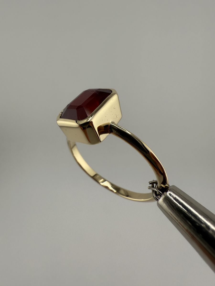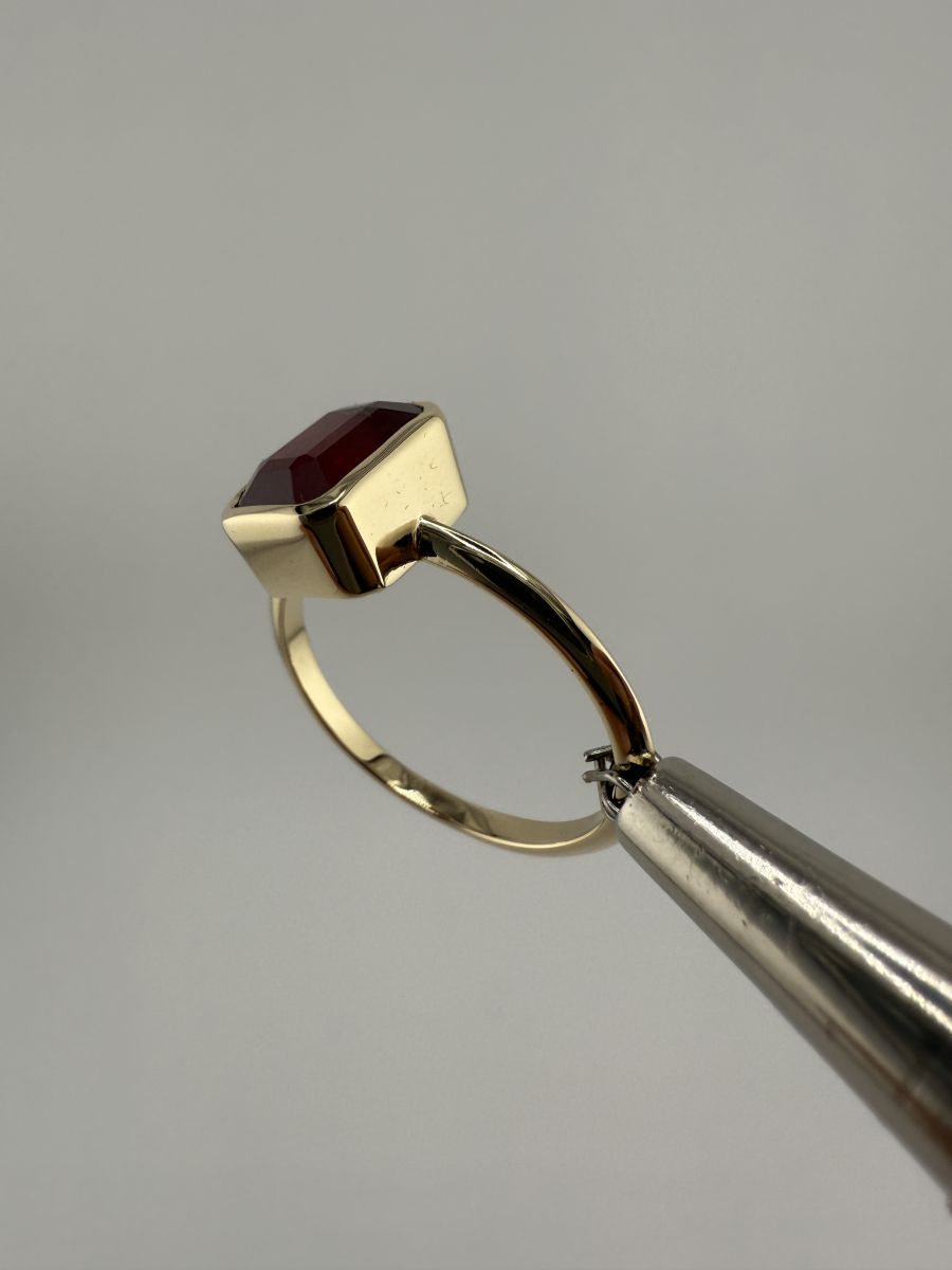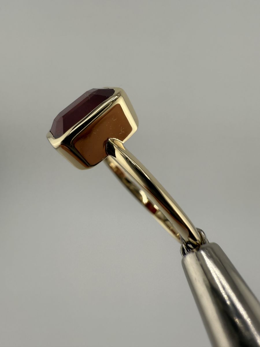 Pierścionek Elegance Horizon to połączenie ponadczasowej elegancji i nowoczesnego designu. Wykonany z żółtego złota, centralny kamień w kształcie ośmiokąta, ze ściętymi rogami, został osadzony poprzecznie w stosunku do dłoni, co nadaje pierścionkowi wyjątkowy, geometryczny wygląd. Ten niezwykle stylowy pierścionek przyciąga uwagę swoim wyrafinowanym blaskiem i doskonałym wykończeniem, podkreślając indywidualność i elegancję noszącej go osoby.